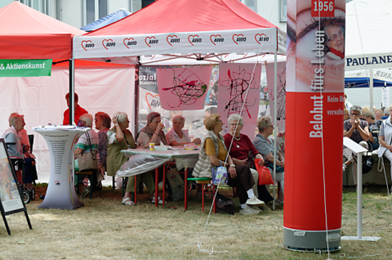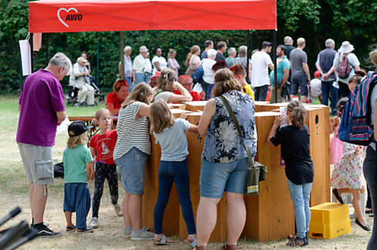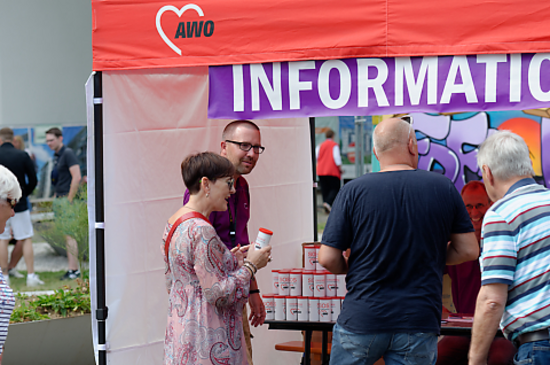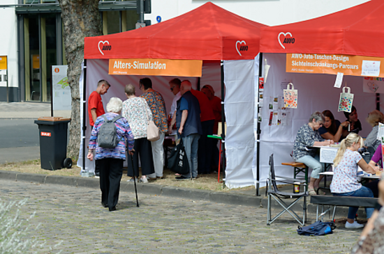 Schattenplätze waren bei strahlendem Sonnenschein sehr begehrt. Hier wurde der Stand der AWO Oberhausen umfunktioniert.