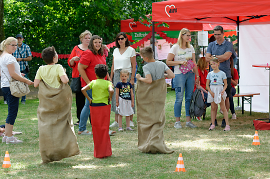 Auch Sackhüpfen gehörte zum Bewegungsangebot unserer Kindertageseinrichtungen.