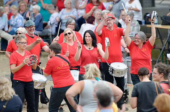 Die Sambagruppe Pulsacao - Mit Zuckerhut und Peitsche animierte mit heißen Beats zum Mittanzen.