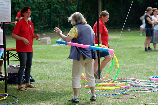 Aber auch "ältere" Besucher*innen konnten dem Hula Hoop nicht widerstehen.