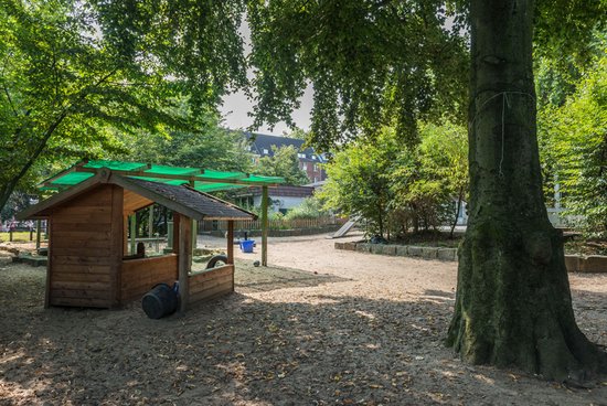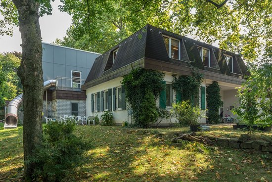 Unser Familienzentrum liegt im Stadtteil Düsseltal. An der Grafenberger Allee befindet sich unser Haus idyllisch eingeschlossen von alten Bäumen und grünen Wiesen im Haniel-Park: