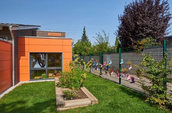 Wir betreuen etwa 50 Kinder im Alter von vier Monaten bis zum Schuleintritt. Der Talentschuppen liegt in einem ruhigen Wohngebiet an der südlichen Stadtgrenze Monheims. Die Entfernung zum Stadtzentrum beträgt etwa zwei Kilometer. Busse verkehren im 20-Minuten-Takt. Als betrieblich unterstützte Kindertagesstätte garantieren wir die Vereinbarkeit von Familie und Beruf durch arbeitszeitkompatible und familienfreundliche Öffnungszeiten und die Bildung, Betreuung und Erziehung von Kindern ab dem vierten Lebensmonat bis zum Eintritt in die Schule.